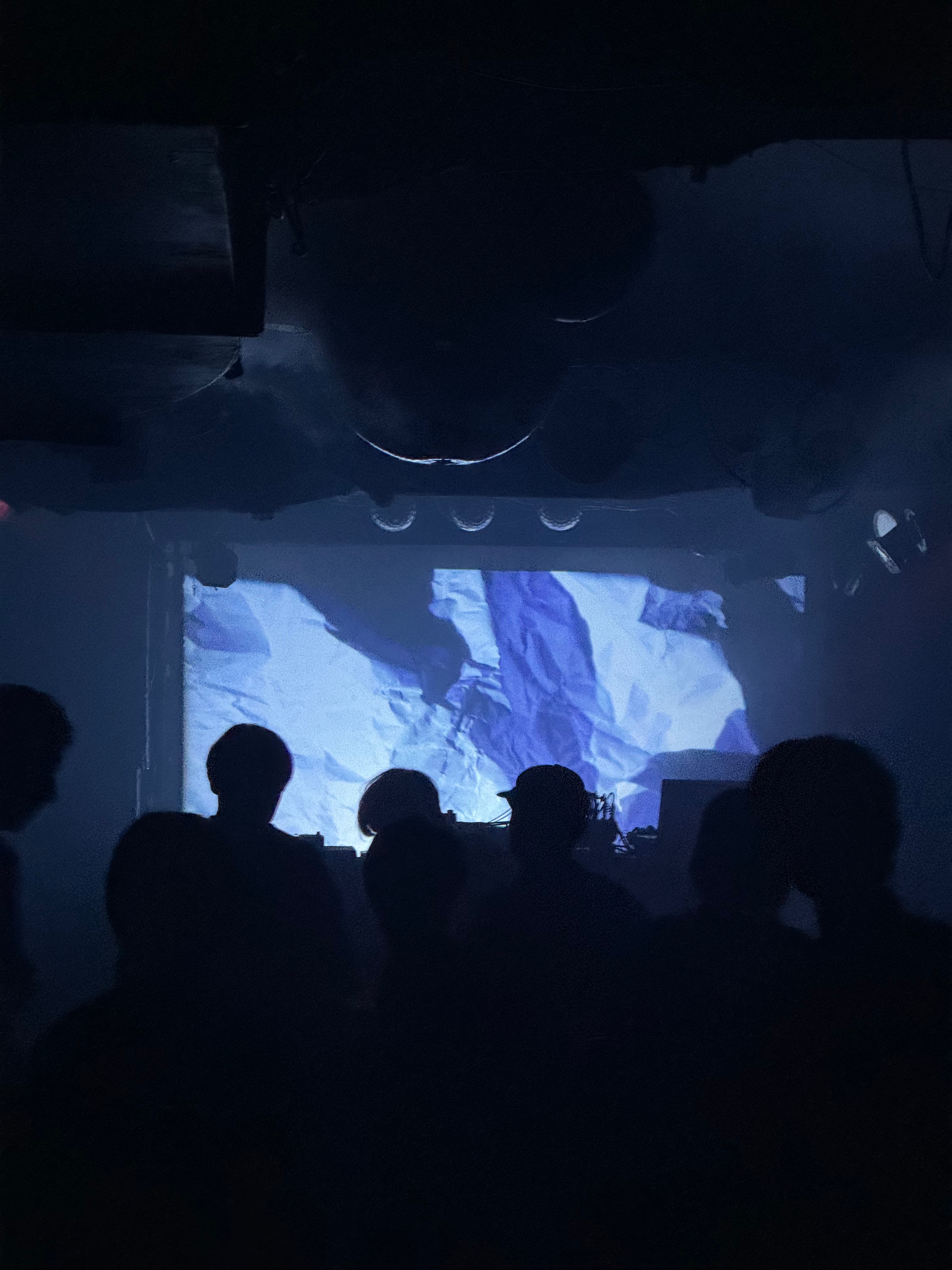 パソコンを使わずに iPad の上にモニターを物理的に重ねたものをカメラで撮影し、ドロステ効果などの現象を用いて、デジタルとアナログを融合させた有機的な VJ を行っている。